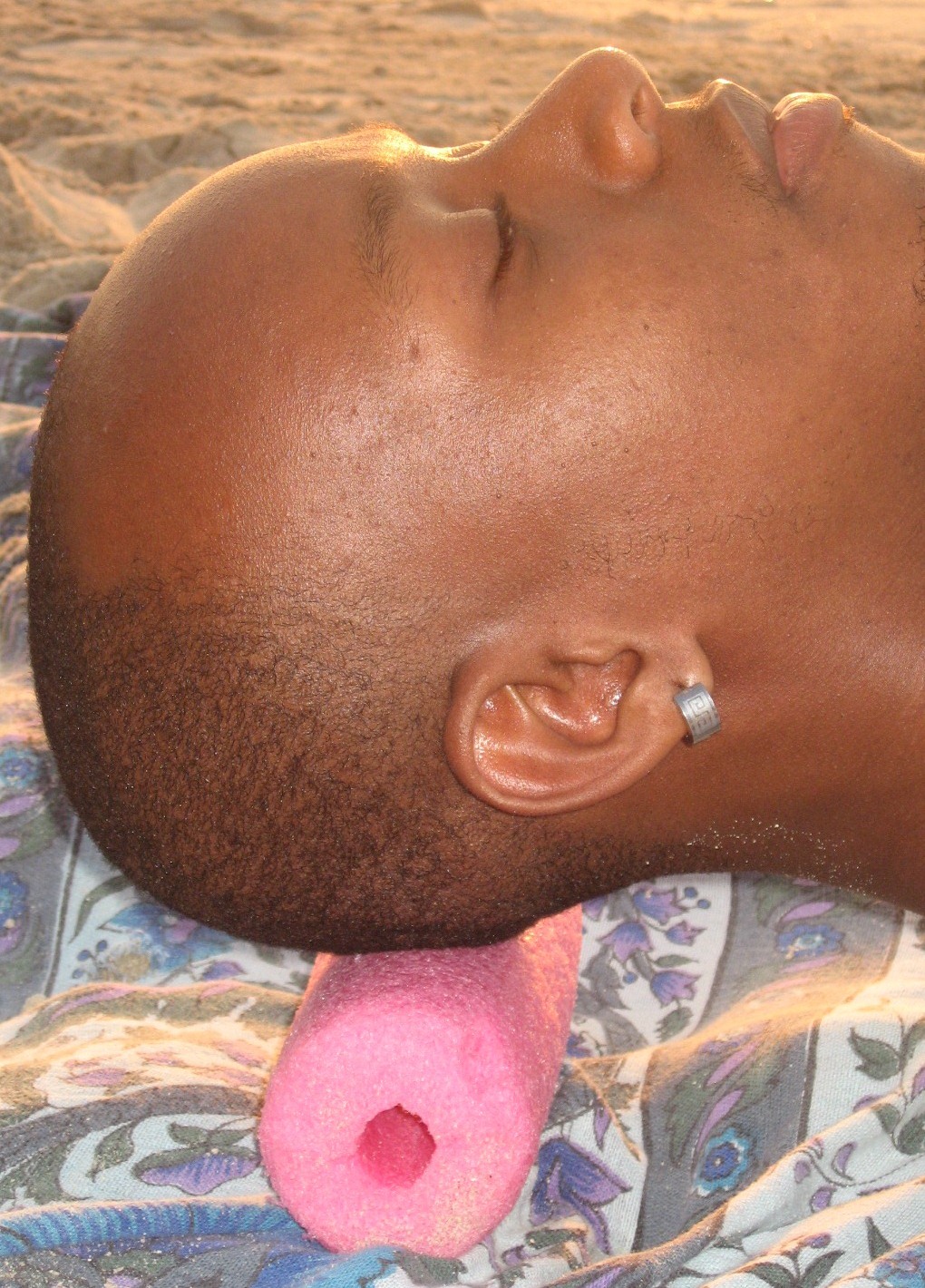 Or lie down and place one under your head horizontally. Make sure you’ve placed it properly so that your chin drops down toward your chest.