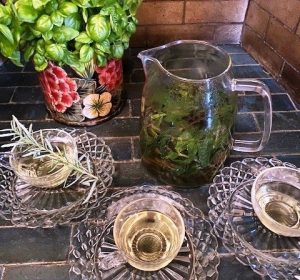Among the best herbs are rosemary, mint, basil and especially lemon balm –not pictured because it’s hard to find these days. A local grower promises he’ll have some in a few weeks.